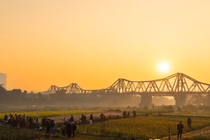 - Lựa chọn góc chụp: hướng về cầu Long Biên để bắt lấy đường nét kiến trúc; hoặc đứng gần thảm hoa để nhấn mạnh màu sắc.